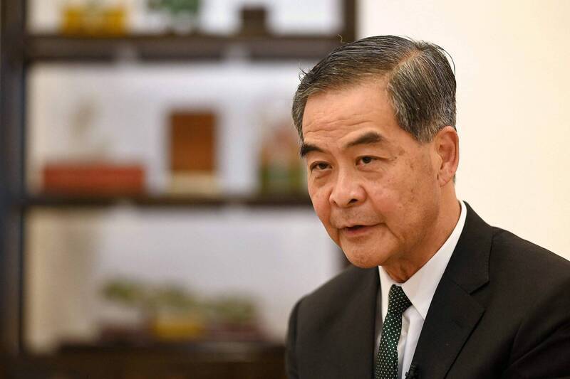 前香港特首梁振英日前在芬蘭公園「跟拍恐嚇」法輪功學員。(法新社檔案照)