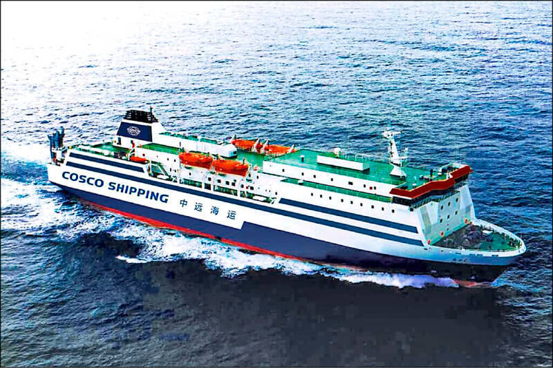 美國軍事情報機密報告顯示,中國正迅速擴建其商用渡輪船隊,以建構對台灣發動入侵的能力。圖為中國「棒棰島」渡輪。(資料照,取自中遠海運客運網頁)