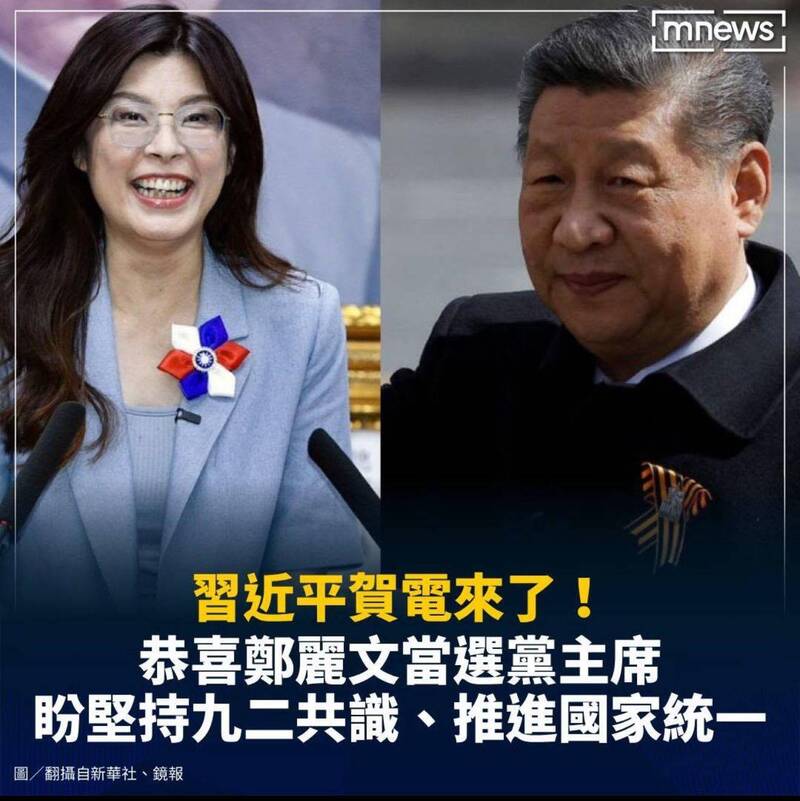 中共推鄭麗文上台,是要把國民黨變成可操控的政治外殼。(取自貼文)