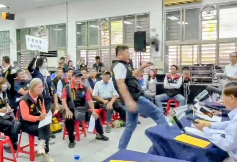 花蓮縣議會議長張峻怒踹國民黨立委傅崐萁桌子。(民眾提供)