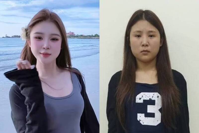 中國網紅「橙子姐姐」的真實樣貌(右)與抖音上的樣子(左)判若兩人。(圖翻攝自微博、《柬中時報》,本報合成)