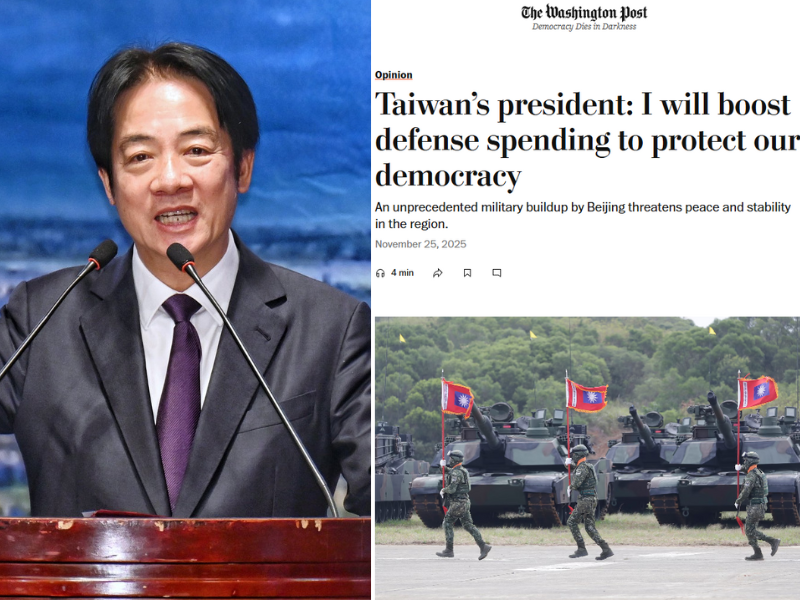 總統賴清德於美東時間11月25日透過《華盛頓郵報》刊登專文,無疑是臺灣近年最具戰略意義的國際傳聲筒事件之一。在區域局勢急速升溫的時刻,臺灣不再僅以被動姿態回應威脅,而是主動以「戰略敘事」向全球宣示自身定位:臺灣是印太和平的參與者,而非風險製造者。
