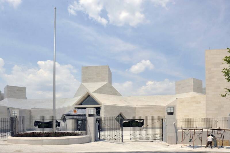 中共在駐外館處安插涉台人員,圖為中國駐美國華盛頓的大使館。(彭博檔案照)國台辦人員進駐駐外館處:外交編制的戰略轉用