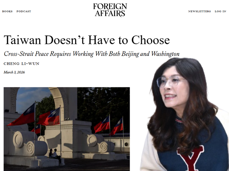 國民黨主席鄭麗文日前投書國際期刊《外交事務》宣稱「台灣不必選邊站」,引起廣泛討論。(擷取自《外交事務》、資料照,本報合成)
