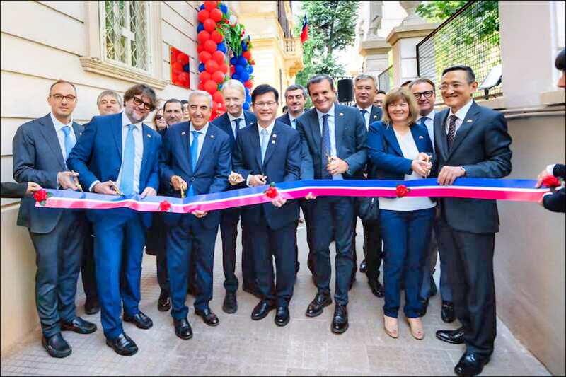 外交部長林佳龍訪問義大利,與義國政要出席我駐處整修竣工典禮。(外交部提供)