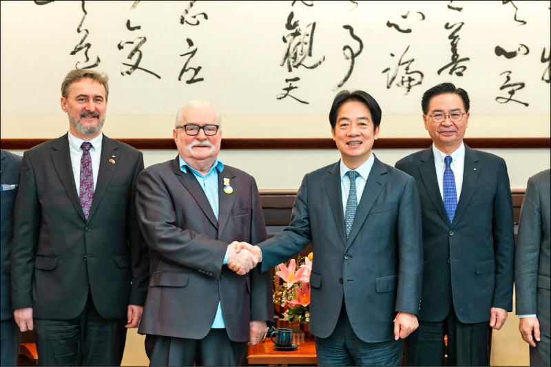 波蘭前總統華勒沙(左二)向賴總統(右二)強調:台灣與波蘭面臨同樣艱困的處境,但任何解決方案都不應由外界提出,台灣的未來應該由台灣人民自己決定。(資料照,總統府提供)